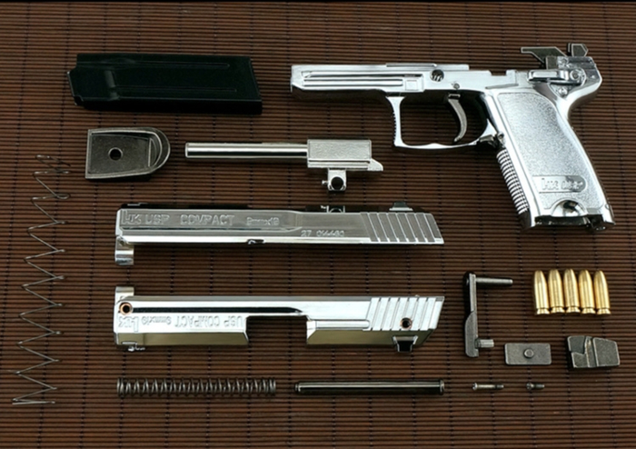 模型化的玩具枪通常只有十多厘米左右,十分迷你,同时这些模型的枪管都是封闭的,没有击发的功能。不过麻雀虽小,五脏俱全。对这类玩具枪而言,不仅有弹夹等辅助配件,还拥有模型子弹能实现上膛、换弹、抛壳,甚至可拆卸、组装等众多动作。