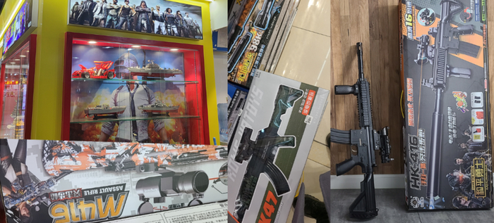 那么,既然线上电商平台上没有相关产品的售卖,那么小区里的孩子又是如何获得这种玩具枪的呢?为了寻找答案,我们将目光瞄准了线下。