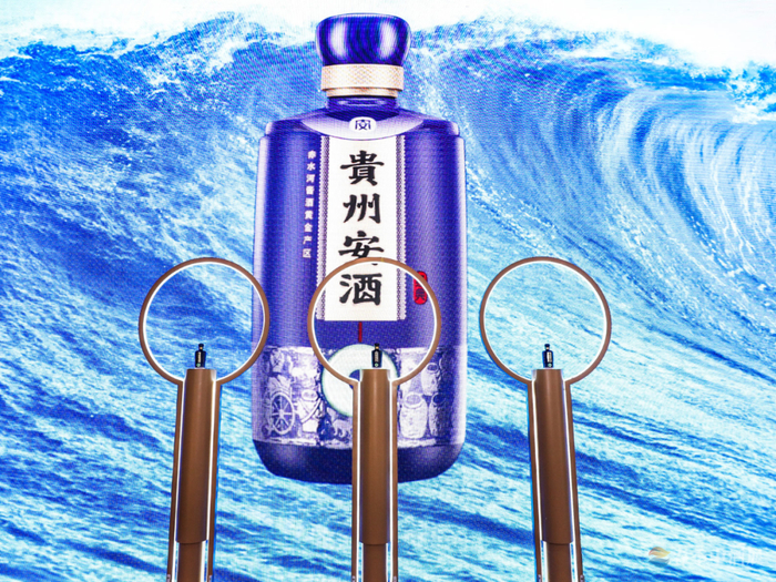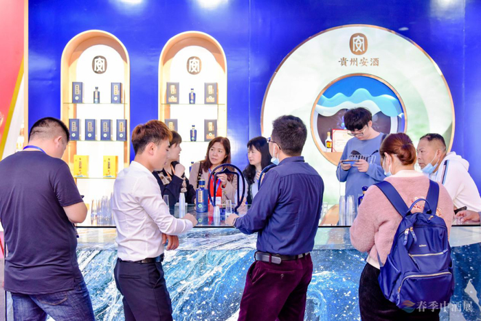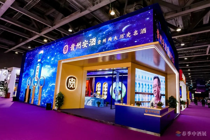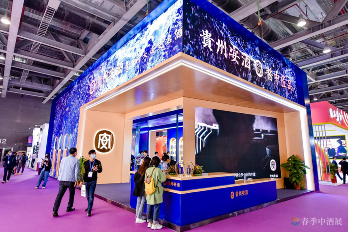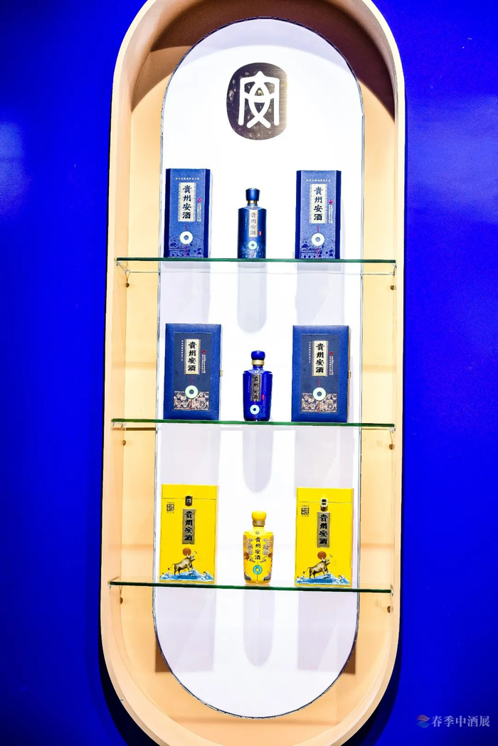 一抹经典蓝,简洁大气又不失高贵典雅,贵州安酒(经典)、贵州安酒(臻藏)两款核心单品,将贵州历史名酒在春季中酒展舞台完美呈现。