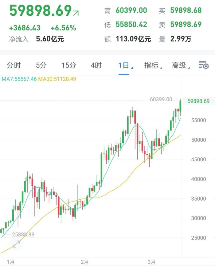 涨疯了!比特币突破6万美元 18万人爆仓、马斯克却狂赚70亿