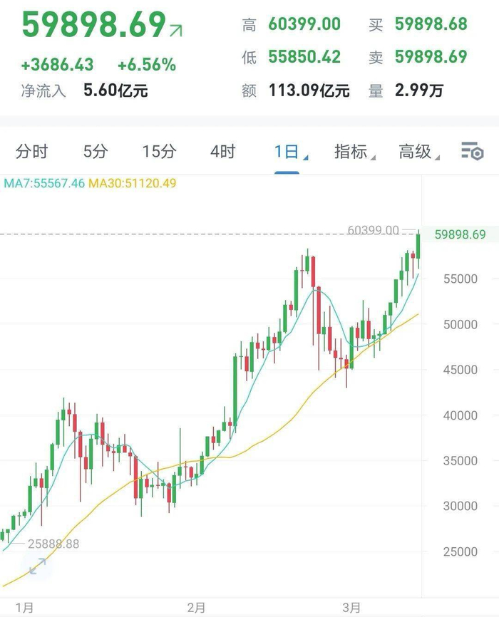 涨疯了!比特币突破6万美元,18万人爆仓,马斯克却狂赚70亿