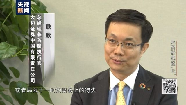 大和证券中国有限责任公司 总经理 耿欣:大和在中国市场的这种发展的历程,一定程度上就是中国资本市场改革开放的一个小小的缩影。每一个阶段,其实我们都在做不同的事,所以我一直说我们不仅是中国资本市场开放的一个见证者,也是一个积极的参与者。