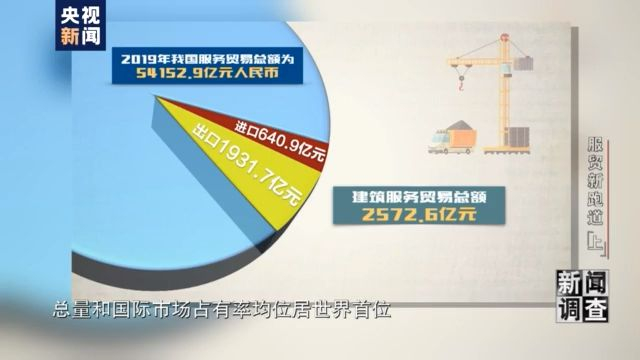 建筑行业是最传统的服务业之一,也是在服务贸易中,我国能多年保持顺差的领域。2019年我国建筑服务贸易总额为2572.6亿元人民币,总量和国际市场占有率均位居世界首位。
