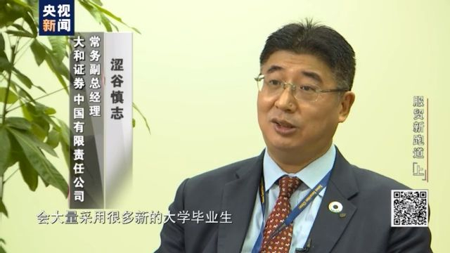 大和证券中国有限责任公司 常务副总经理 涩谷慎志:我进公司的这一年是(日本泡沫经济)最后的一年,然后那时候我们每年公司会大量采用很多新的大学毕业生,其实我还是占了我们中国的光,因为那个时代其实涉及到日本的券商去开拓中国市场,开始在招中国人去做这个中国的市场,在那时我们正好是搭上了这个顺风车了。