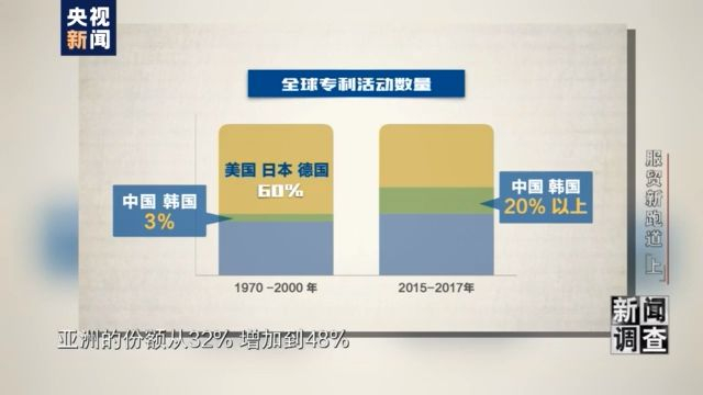 尽管30多年前外国申请人对专利制度的敏感性更高,但老练的参与者有时也很难预见新手的未来。世界知识产权组织的报告显示,在1970年到2000年间,来自美国、日本、德国这专利三巨头贡献了全球所有专利活动的三分之二。但进入21世纪后,世界专利版图发生了明显变化,亚洲的份额从32%增加到48%,最主要的贡献来自于中国和韩国。