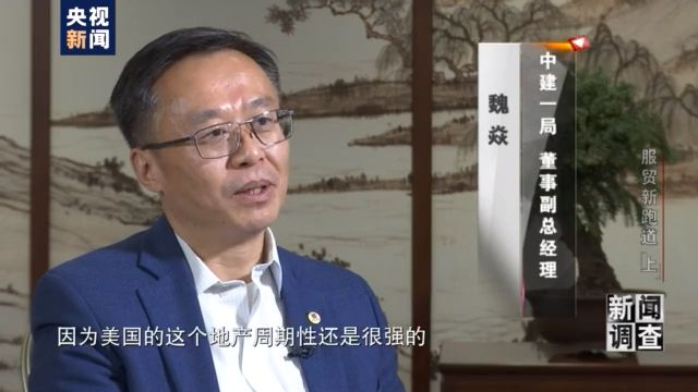 中建一局 董事副总经理 魏焱:当时也是进入这个市场的时机不是很好,因为美国的这个地产是周期性还是很强的,基本上每十年会是一个周期,我们进去的时候是正好在它房地产的那一轮周期的波峰的时候,进去以后整个的地产,就是进入了一个下行的这样的通道,所以后来我们还是整个九十年代还是比较困难的一个时候。