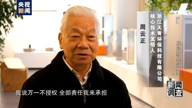 浙江天青环保科技有限公司 核心技术发明人 周云正:当时我跟王博士讲,我说万一不授权,全部责任我来承担。你也努力了,我也知道。但是我想跟你这样合作,欧洲专利局一定能够依法授权。