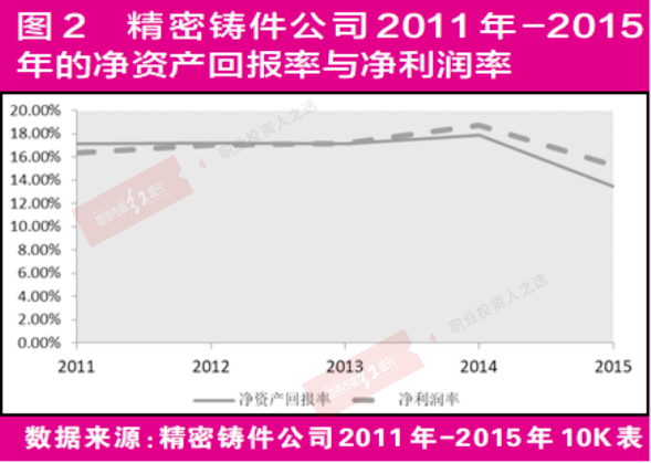 从表1中我们可以看到,精密铸件公司按照市盈率看,是巴菲特做过的并购中,市盈率排第二的公司(17.5倍),仅次于通用再保险(General Re)的23.5倍。支付这么高的溢价,显然意味着他非常看好精密铸件公司未来的发展前景。