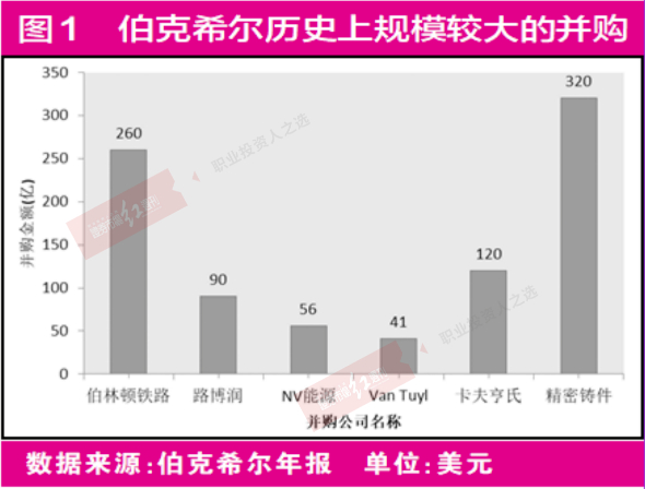 Todd买入后,和巴菲特交流过这个公司。有一次精密铸件公司的CEO Mark Donegan来奥马哈和Todd交流,恰好被巴菲特撞见并一眼相中。巴菲特觉得Mark和他的公司很符合伯克希尔的企业文化。在考虑收购前,他只问了当时年届六十的Mark一个问题:“等你到了65岁(也就是退休的年纪),你还打算继续干吗?”得到了肯定的答复后,他便向精密铸件公司抛出了橄榄枝,于2016年1月29日完成了伯克希尔历史上按照市值计算最大的并购。(见图1)