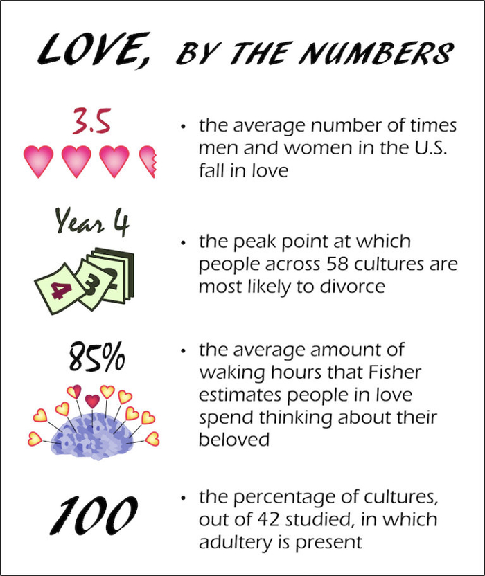 但是,仅仅因为我从生物学的角度研究行为,不代表我否认文化带来的影响。这两个主要力量永远相辅相成。你与谁相爱、在哪里相爱、如何表达你的爱,其中都包含着许多文化因素。但爱情真实的感觉,是生理的。