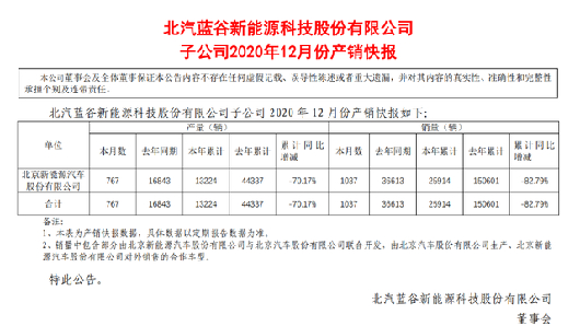 销量下滑在财报中的体现淋漓尽致,1月份北汽蓝谷的业绩预告中称,2020年公司归母净利润及扣非后的归母净利润将会有超过60亿元的亏损,这个亏损数额超过公司上市依赖的盈利总和。