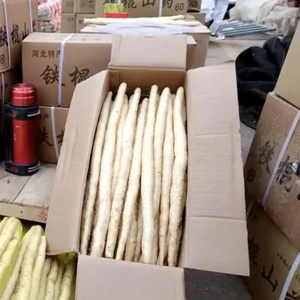 北京市某批发市场内也以白色山药居多,这些白净的山药有的装在纸箱里,有的装在网袋里,整袋或者整箱一起往外批发。