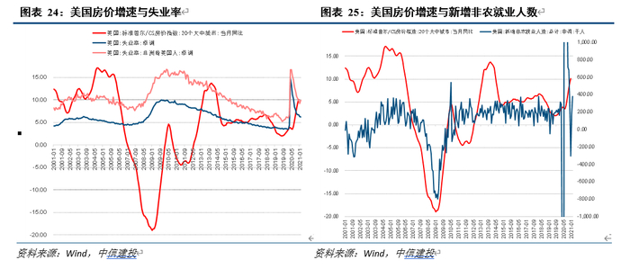 过往研究表明,失业率与就业人数趋势往往是中期变量,当前美国结构性失业和新冠疫情对就业冲击并存,后续如能改善则有利于支持房价中期上行。在经济正常时期,失业率与就业人数往往在短期内保持相对稳定,且对房价的影响传导链条相对较长,因此在短期内常不构成显著因子;但在中期层面,失业率与就业在微观上对个人和家庭主体收入和消费行为的影响深远、在宏观上是经济和货币政策重要目标,因此仍是重要参考变量。