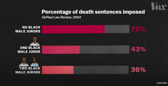 美国塔夫茨大学(TUFTS)的一项研究表明,由全白人(all-white juries)组成的陪审团对非裔被告往往会更加严酷。而由芝加哥德保罗法学院(DePaul University College of Law)发起的另一项调查显示,如果陪审团中有多个非裔陪审员,那么被告被判死刑的概率则会大大降低。