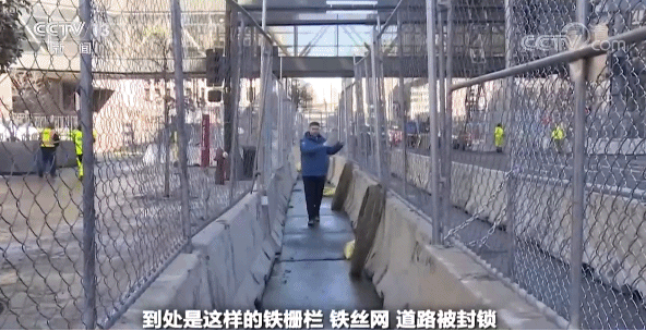记者:明尼阿波利斯市已经变成了“战区”,到处是这样的铁栅栏、铁丝网、道路被封锁。