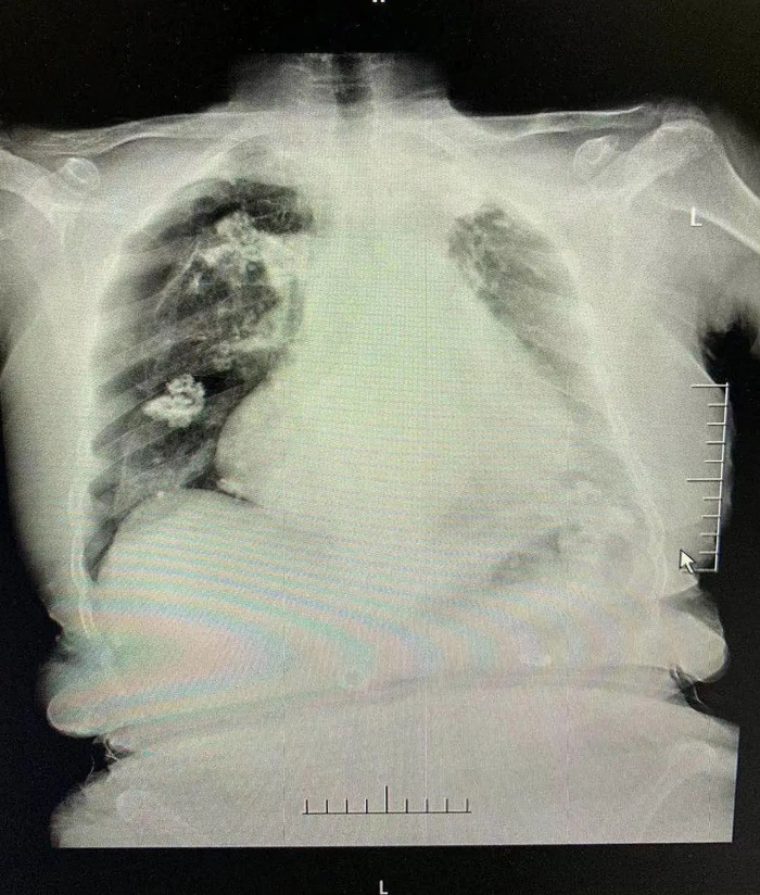 陶金医生立即根据患者主诉完善各项检查,结果发现患者心电图未见异常、心衰标志物也正常、体征与心脏病也不符。但听诊时发现右侧呼吸音低,与气胸表现很相似,便询问浦阿姨最近有没有其他不适。随后,家属的回答却让陶医生大吃一惊。