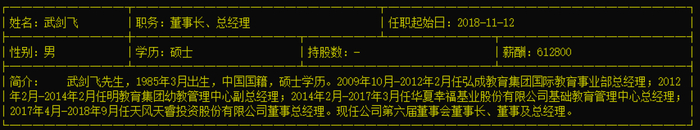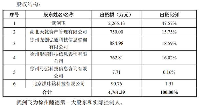 如上所述,武剑飞持有徐州睦德47.57%的股份,是徐州睦德第一大股东和实控人。武剑飞自2018年11月12日始任职,此前曾担任过天风天睿投资股份有限公司董事总经理。