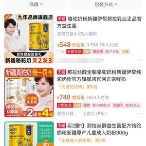 一名业内人士告诉记者,那拉丝醇和王牌驼是驼奶行业的畅销品牌,“特别是那拉集团旗下的产品,微商、电商卖得很多,甚至能占据一半的市场全脂驼乳粉份额。”