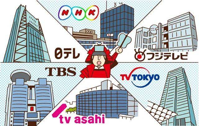 日本的电视台不同于中国各省都有自己电视台的形式,全日本一共只有6家电视台,分别是NHK、日本电视台、TBS电视台、富士电视台、东京电视台和朝日电视台。