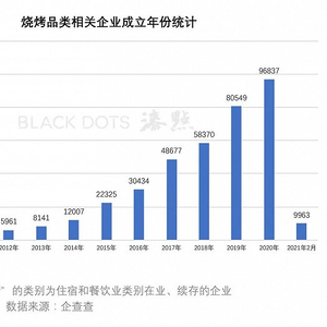 据企查查数据可看出,2013年前,烧烤品类增长相对缓慢,而之后以高速在增长,2020年达到巅峰,尽管去年在疫情影响的情况下,仍以平均每个月新增8000多家烧烤门店的速度在增长。