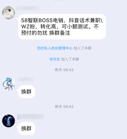 一开始我在想,简历交易里最吃香的既然是兼职,那应该是一些不正规的,经营网赚或者刷信誉的公司有需求吧。经常看到他们在各大网站、平台博主下面刷小广告,如果通过买简历,可以缩小目标客户范围,更高效地发展下线,他们也不需要整天刷群了。