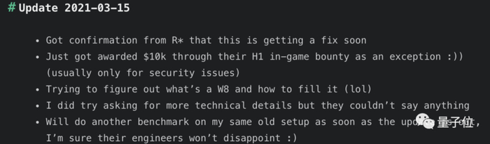在和他联系后,R星认可了他的改进方法,宣布在后续更新中修复相关问题,并且还慷慨的给他付了一笔1万美元的奖金。