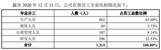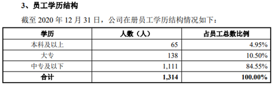 另外,菲菱科思2020年年底的研发人员虽然数量达到296人,占公司员工总数的22.53%,但研发人员整体学历并不高。