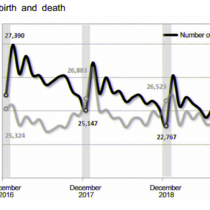 韩国出生人数和死亡人数变化。截图自韩国统计厅网站