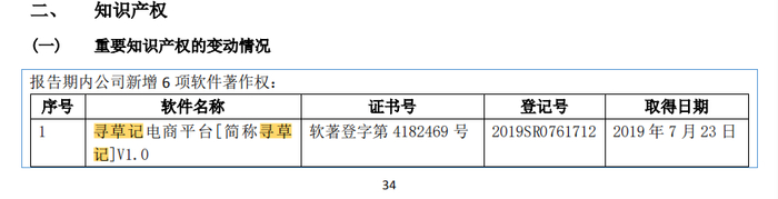云竹信息2019年报也显示,寻草记电商平台软件著作权属于云竹信息:
