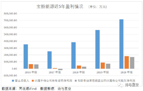 宝新能源2020年实现营业收入71.60亿元,同比增长27.24%,扣非归属于上市公司股东的净利润16.97亿元,同比增长132.93%。