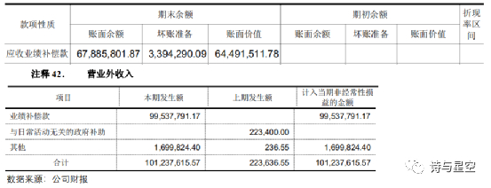 然而财报中披露的应收业绩补偿款为6788.58万元,与剩余应收款相差431.37万元;确认营业外收入9953.78万元,与应收业绩补偿款总额相差876.14万元。