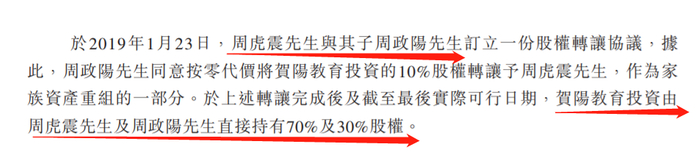 贺阳教育创立于2002年,是一家“父子店”。创始人周虎震及其子周政阳分别持有公司70%及30%股份。