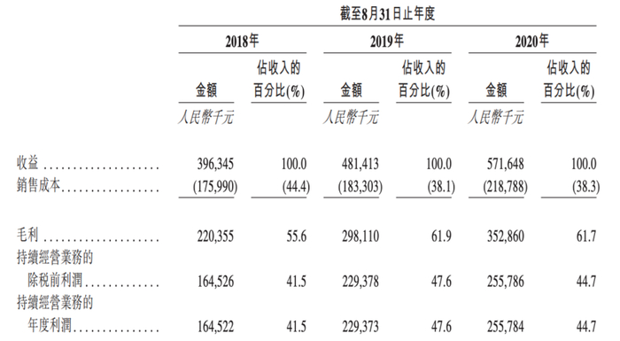 从财务数据来看,贺阳教育近三个财年的复合增长率为20.1%,2018-2020财年其营收分别为3.96亿元、4.81亿元及5.72亿元。持续经营业务的利润分别为1.65亿元、2.29亿元及2.56亿元,复合年增长率为24.7%,处于稳步发展状态。