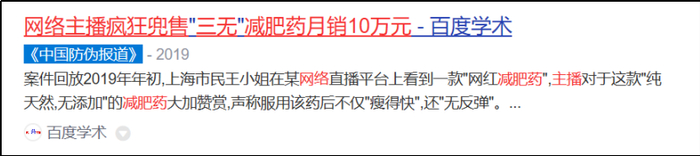 2019年的案例里,“三无”减肥药被网红主播带货,仅一个月的销售额就超过10万元。网上销售价格已经高于成本价几十倍。
