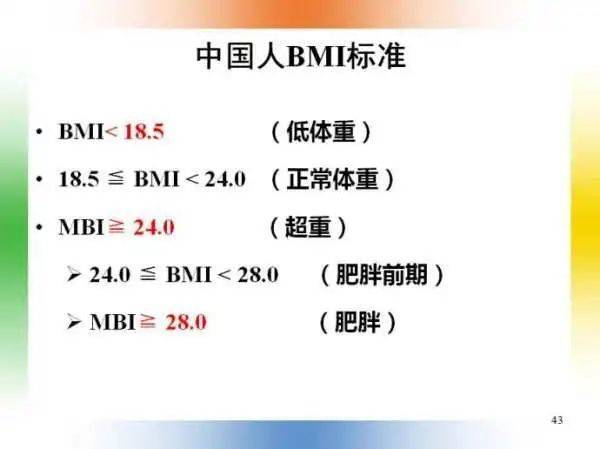 在中国,BMI(身体质量指数=体重÷身高²)的参考标准是18.5~24,在这个范围内属于正常体重范围,是比较健康的。
