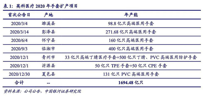 整个2020年,这家公司都在忙着扩张产能,集中力量建设安徽淮北手套生产基地,一次性手套产能,由2019年的190亿只增长至2020年末的360亿只。根据弗若斯特沙利文报告,公司是中国最大及全球第三大的一次性手套供应商。
