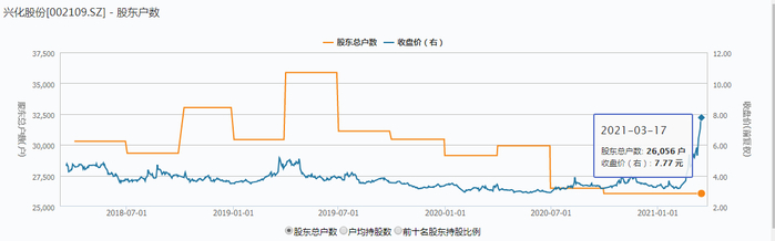 最新数据显示,截至3月17日,兴化股份股东总户数为26056户。