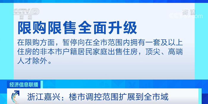 •浙江嘉兴楼市调控升级:外地人限购1套 限售扩大至全市