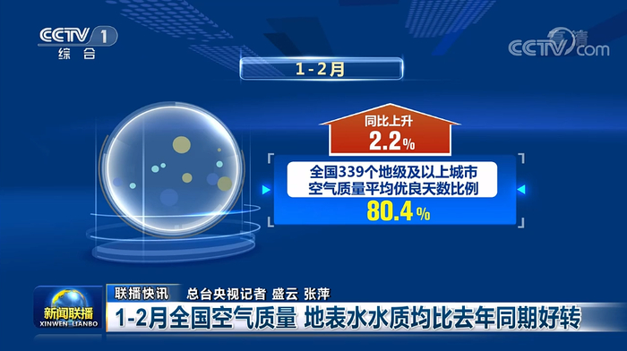 1-2月,全国339个地级及以上城市空气质量平均优良天数比例为80.4%,同比上升2.2%。