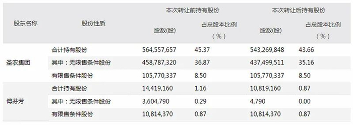 圣农集团及傅芬芳本次大宗交易前后的持股情况
