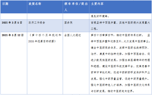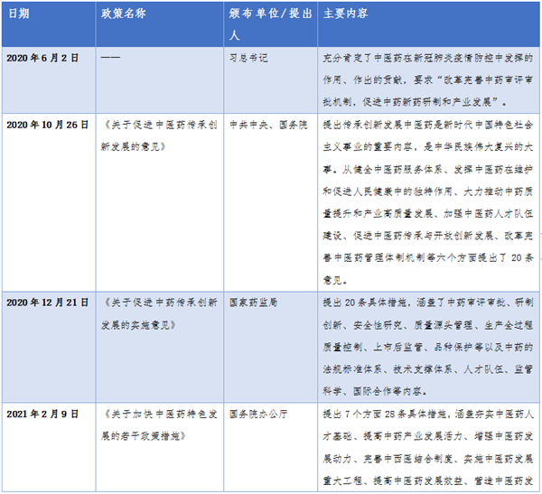 2020年以来,支持中医药大发展的各项政策纷纷出台,两会政府工作报告中医药受重视,可见传承和发展中医药已上升到国家战略层面。传承创新发展中医药是新时代中国特色社会主义事业的重要内容,是中华民族伟大复兴的大事。