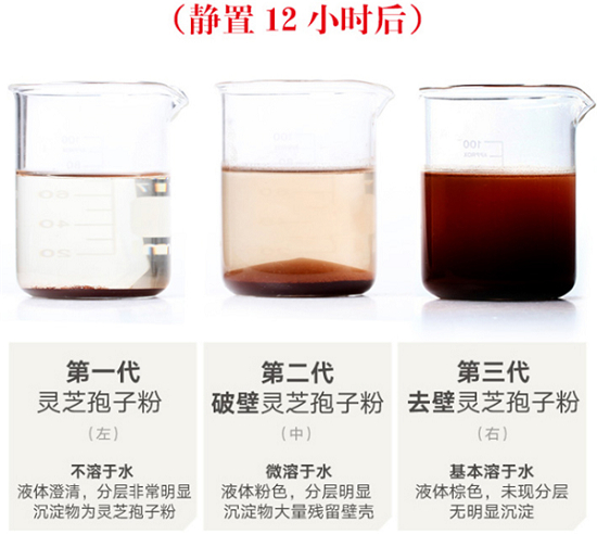 三代灵芝孢子粉溶水实验对比: