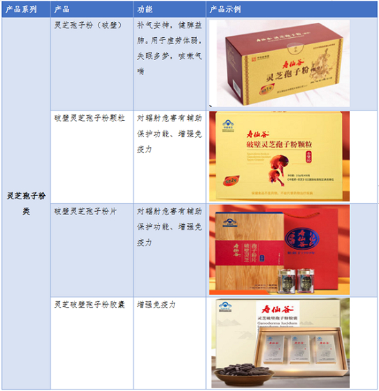 寿仙谷系一家专业从事灵芝、铁皮石斛、西红花等名贵中药材的品种选育、栽培、加工和销售的国家高新技术企业,核心产品主要包括寿仙谷牌灵芝孢子粉(破壁)、寿仙谷牌破壁灵芝孢子粉、寿仙谷牌破壁灵芝孢子粉颗粒、寿仙谷牌铁皮枫斗颗粒、寿仙谷牌铁皮枫斗灵芝浸膏等。