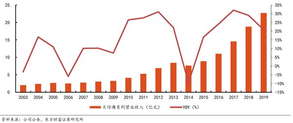 片仔癀系列营业收入及增速: