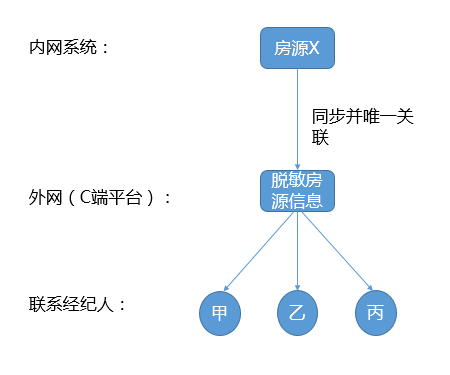 因为所有加入贝壳的门店都必须使用贝壳的A+系统,房源录入系统之后都需要做去重合并,在内网的房源信息全部保证唯一性,并且有内部的核验团队来保证房源的真实性。而在贝壳网上展示的脱敏信息(通常不直接展示单元和房号)和内部系统的完全一致。数据结构示意如下: