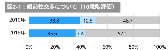 35.6%的日本人不能接受婚前性行为,而57.1%的日本人可以接受。