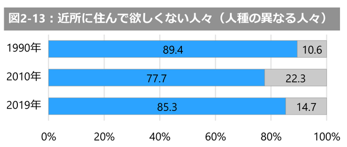 “邻居住着其他人种的人可以吗?”85.3%的日本人认为没问题。