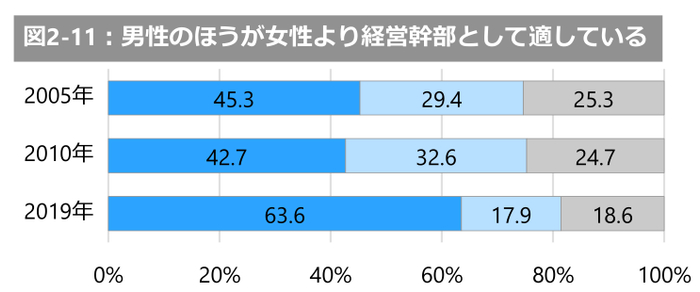 “男性比女性更适合当企业干部吗?” 只有18.6%的日本人这样认为,63.6%的人反对。