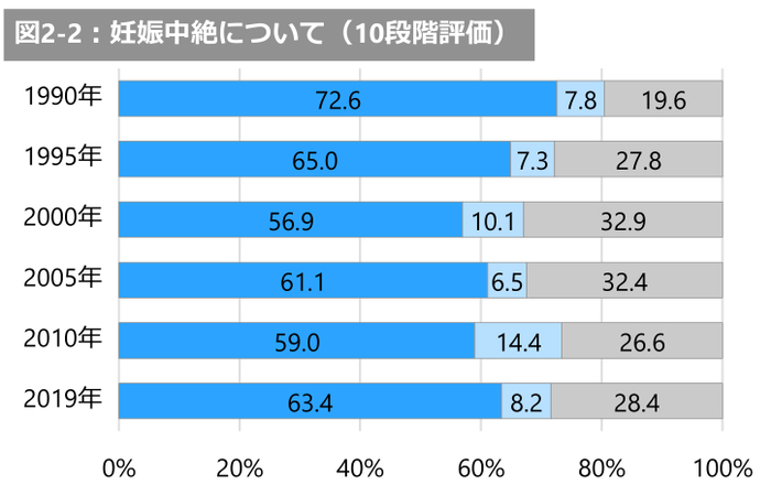 63.4%的日本人不能接受堕胎,可以接受的只有28.4%。