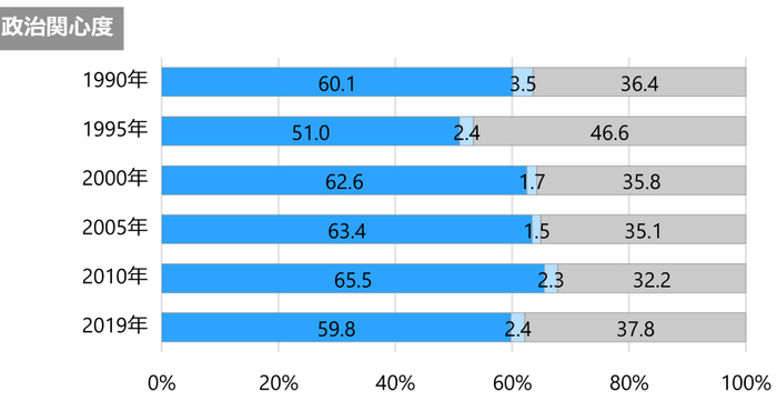 日本人越来越能感受到生活中“政治”的分量。64.3%的人认为生活中政治很重要。